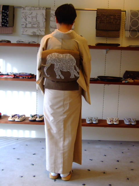 着物は芝崎圭一さんの無地に洛風林さんの袋帯です。